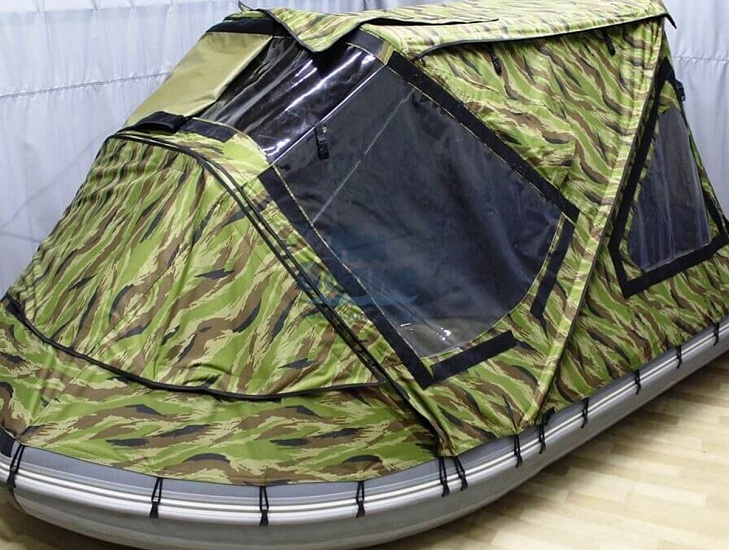 Легкость сборки: конструкция позволяет быстро и легко собирать и разбирать тент, даже находясь в лодке.